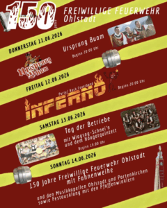 Schon mal vormerken: Vom 11.06.-14.06.2026 feiert die Freiwillige Feuerwehr Ohlstadt ihr 150-jähriges Bestehen.